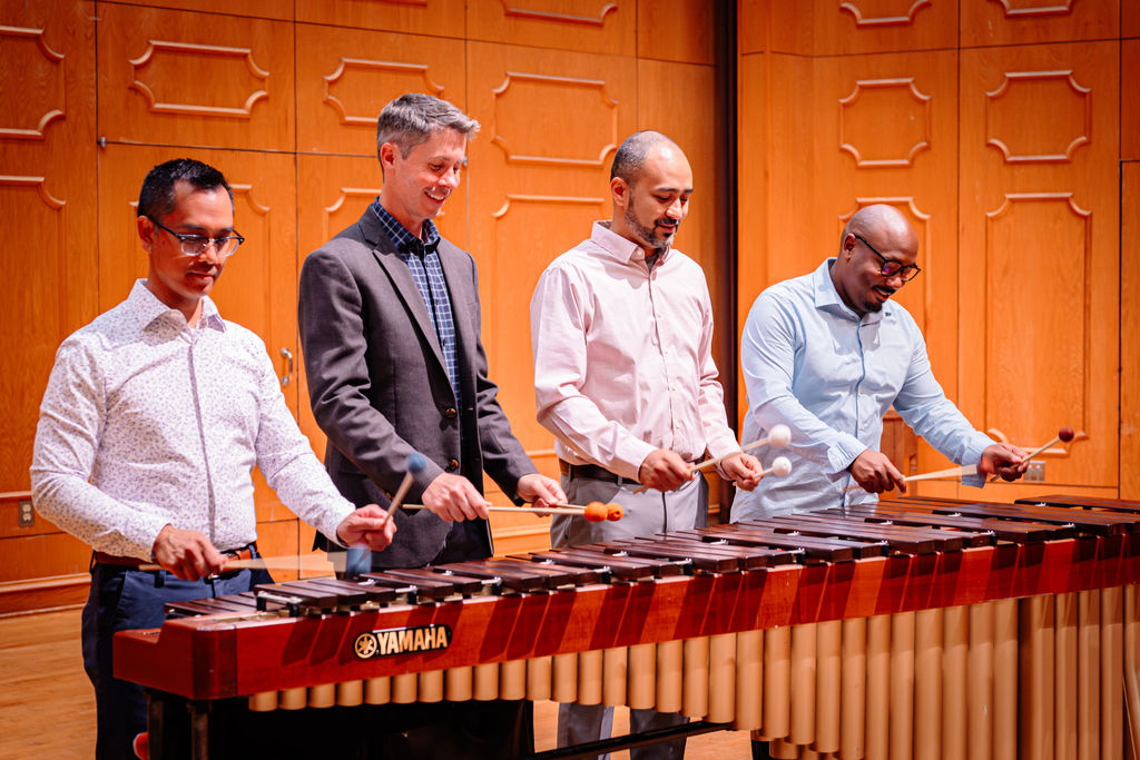 The Ninkasi Percussion Group has been selected to perform at the 79th Annual Midwest Band & Orchestra Clinic. The concert will be on Thursday, December 18 at 1:30 PM in W184. As part of the performance, the group will premiere a new work titled “Descansos” by composer Mat Campbell.